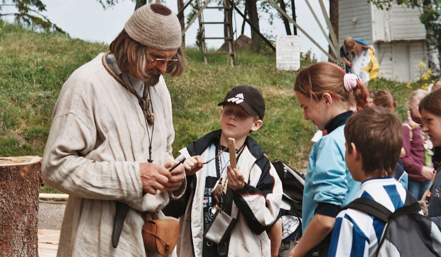 Käime ka metsas. Tutvume viikingiaegse riietuse ja käsitööga, teeme ise käsitööd, püüame vaadelda selliseid majapidamistöid nagu näiteks puude lõhkumine puuhaamrite ja puukiiludega. Vanemate õpilastega vestame puuliistudest vurri. Viskame viskekirveid. Põletame mustri rauaga endale kaelaehte. Tutvume viikingite tähestikuga. Igaüks kirjutab ruunikirjas oma nime.